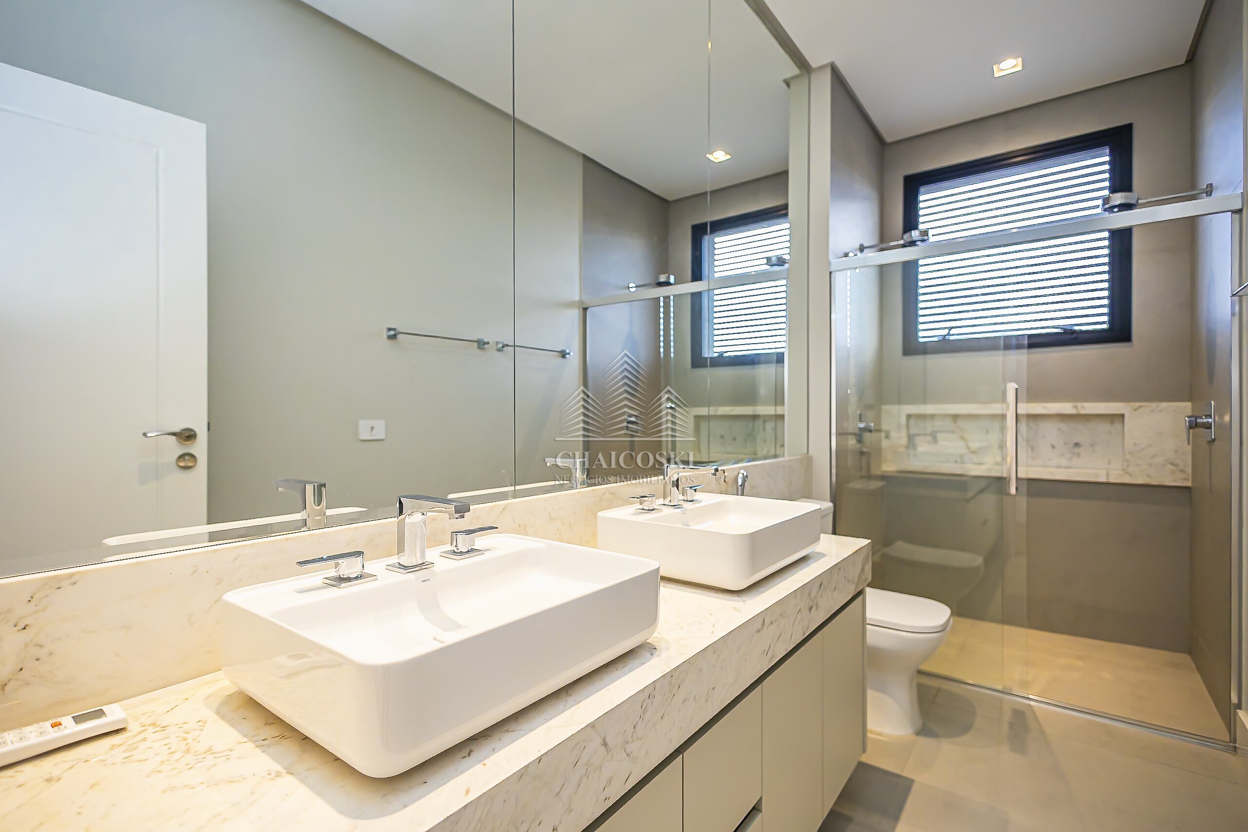 • Banheiros com armário, balcão em mármore, louças Deca,