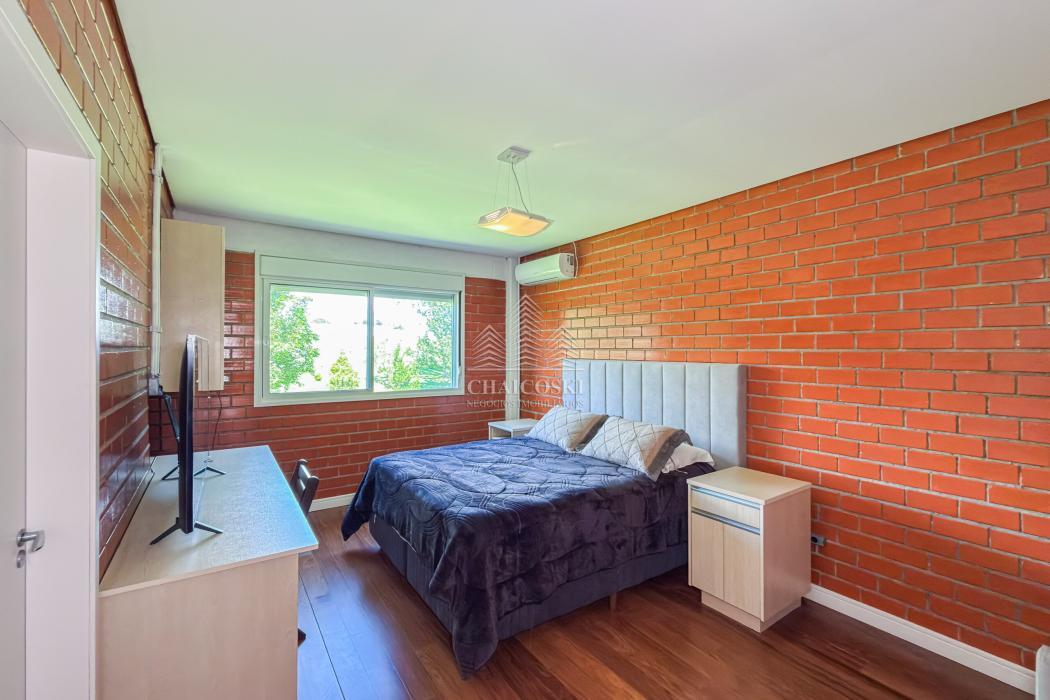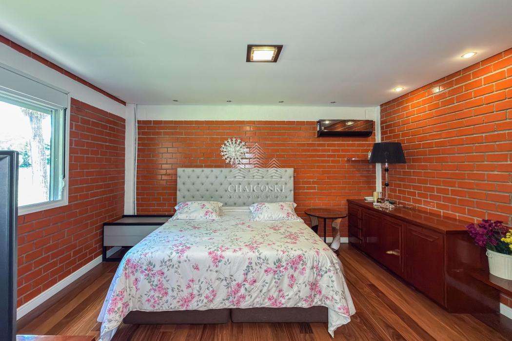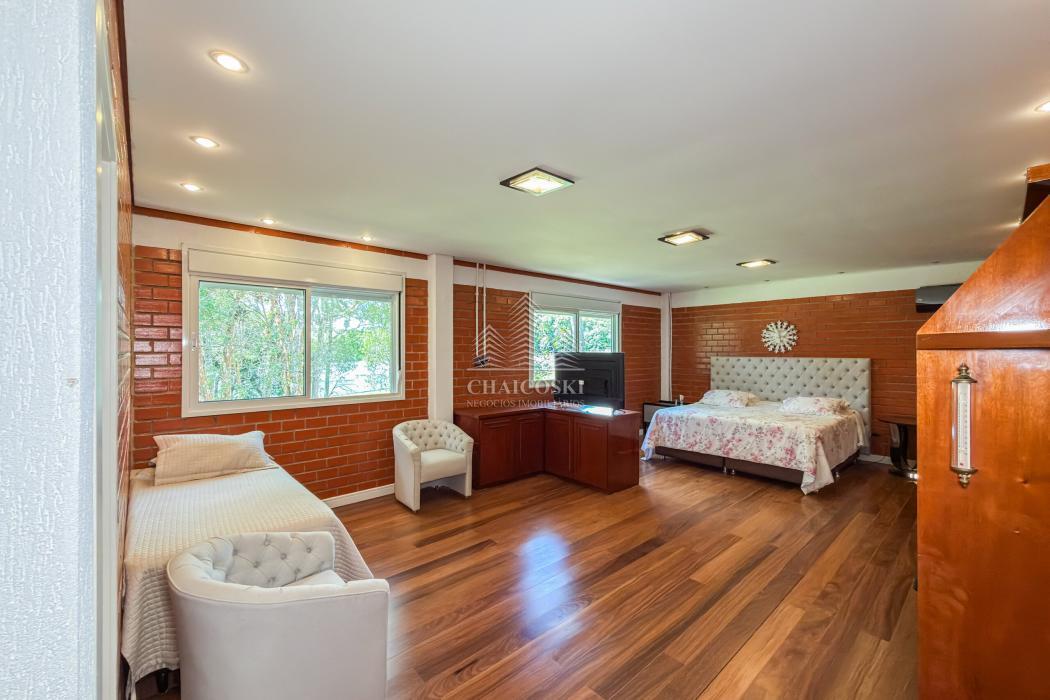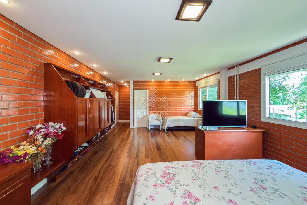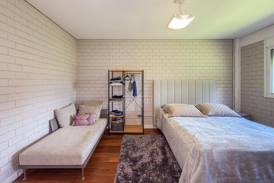 A residência principal possui mais de 700 m² de área construída, com padrão construtivo robusto e manutenção impecável. No pavimento superior estão quatro suítes amplas, incluindo uma suíte master, garantindo privacidade e organização na área íntima.