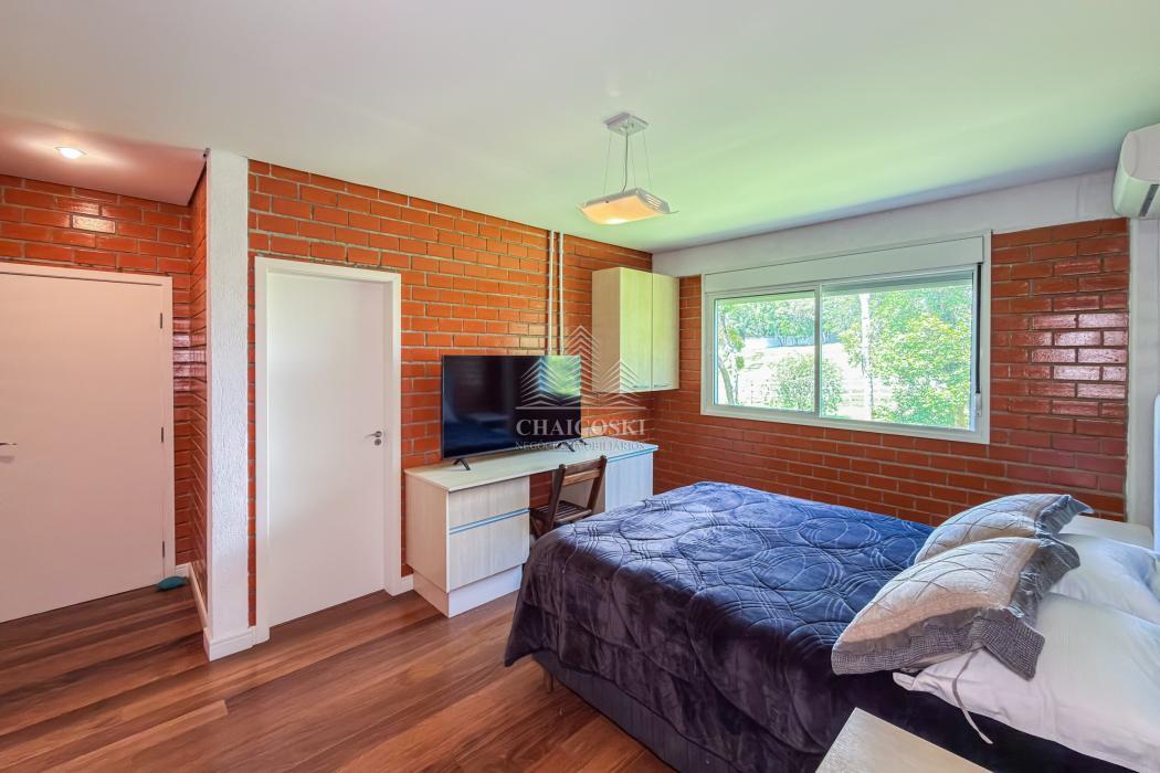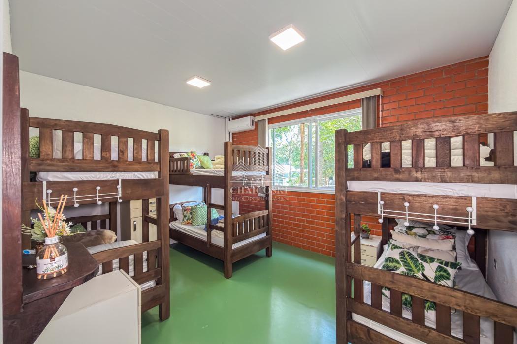 Além das suítes, há ainda um dormitório amplo com quatro beliches, ideal para acomodar hóspedes, crianças ou grupos, mantendo conforto sem comprometer o padrão da residência.