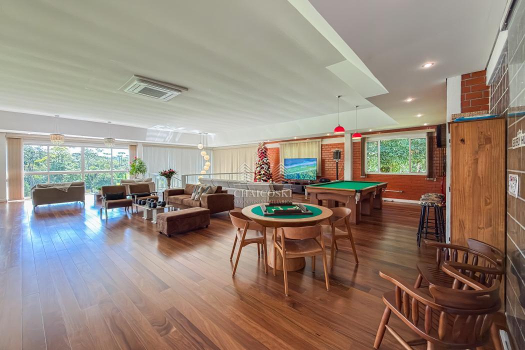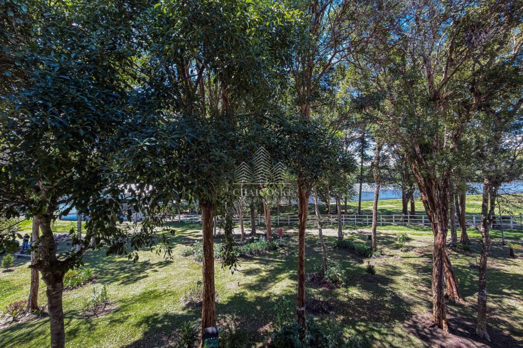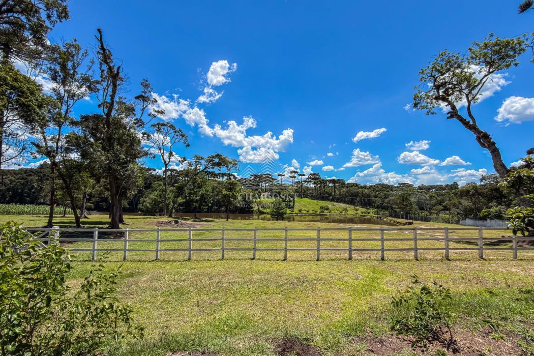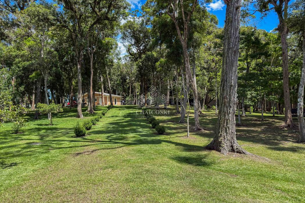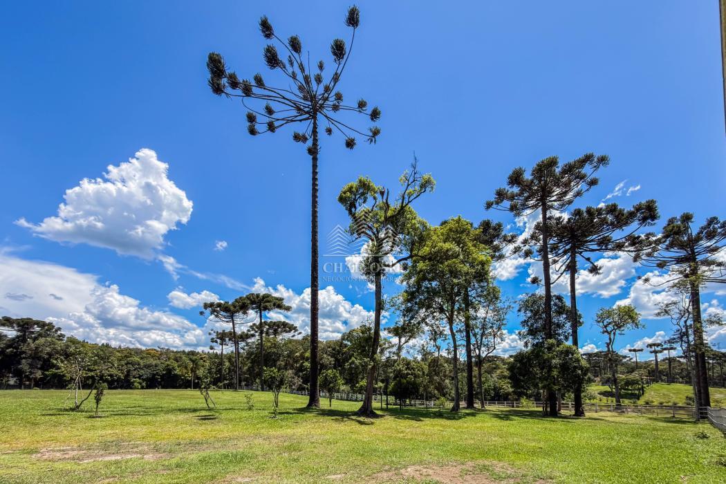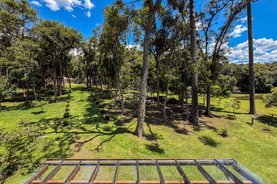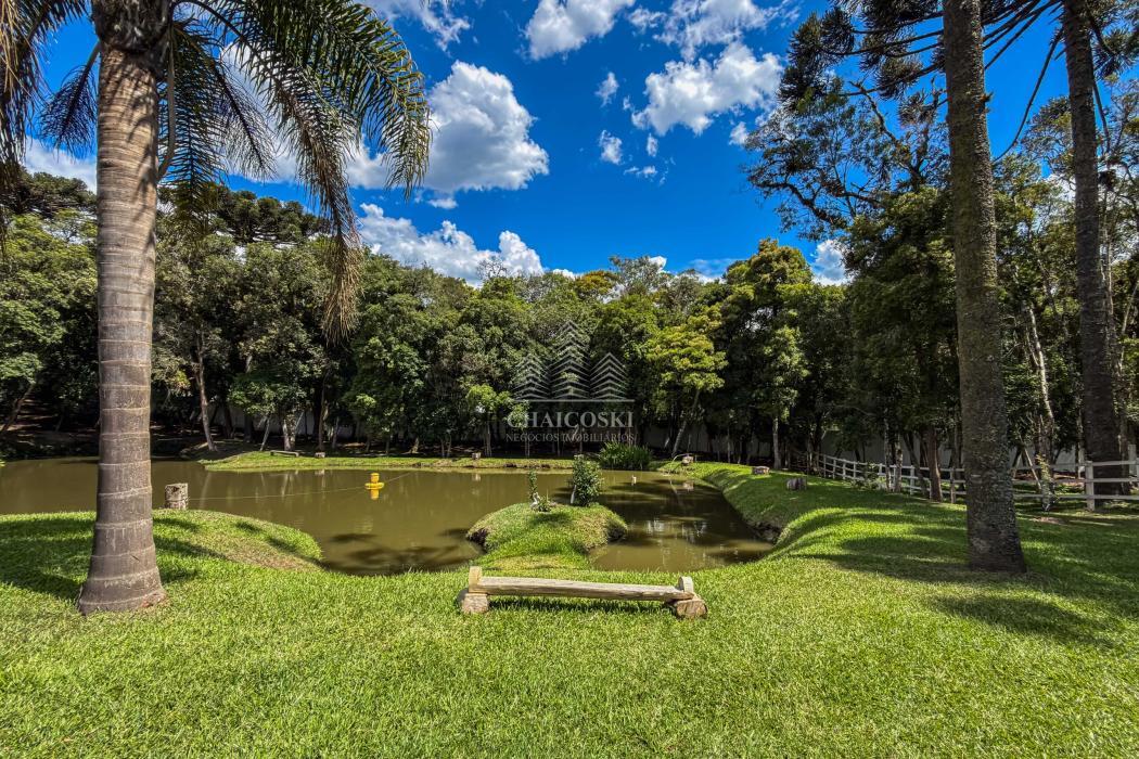 O terreno abriga dois lagos naturais, diversas árvores frutíferas e presença marcante de araucárias, símbolo do Paraná. O cenário é consolidado, maduro e altamente valorizado, criando um ambiente de refúgio verdadeiro para quem busca chácara próxima a Curitiba com contato direto com a natureza.