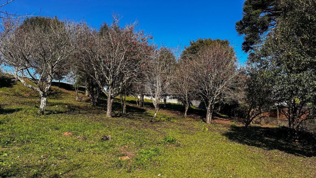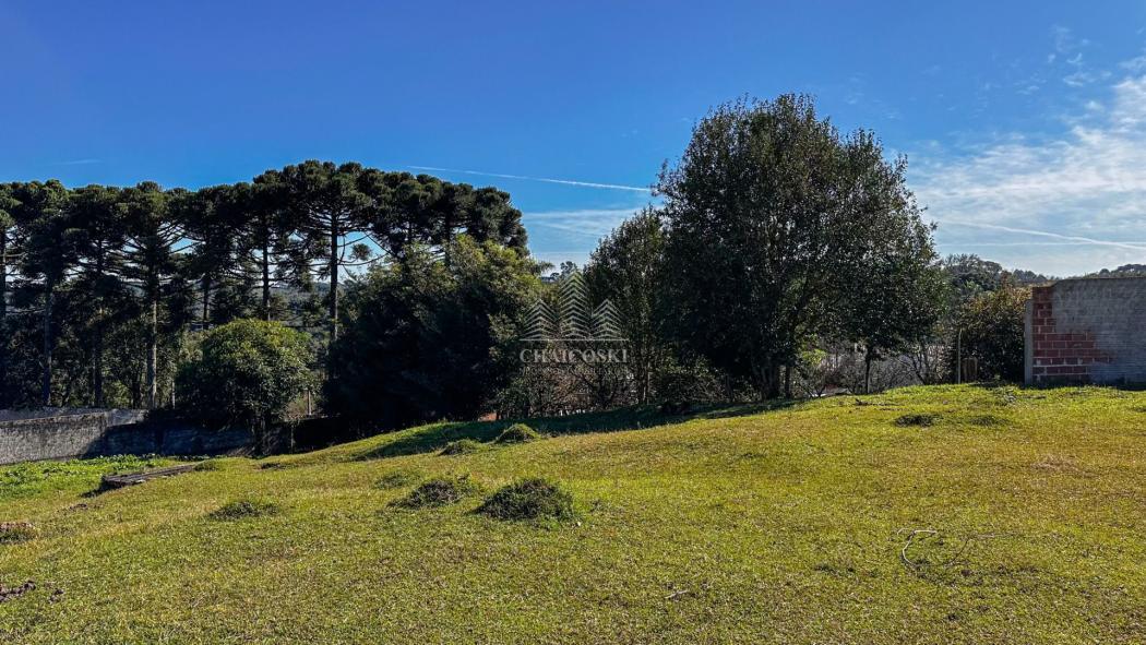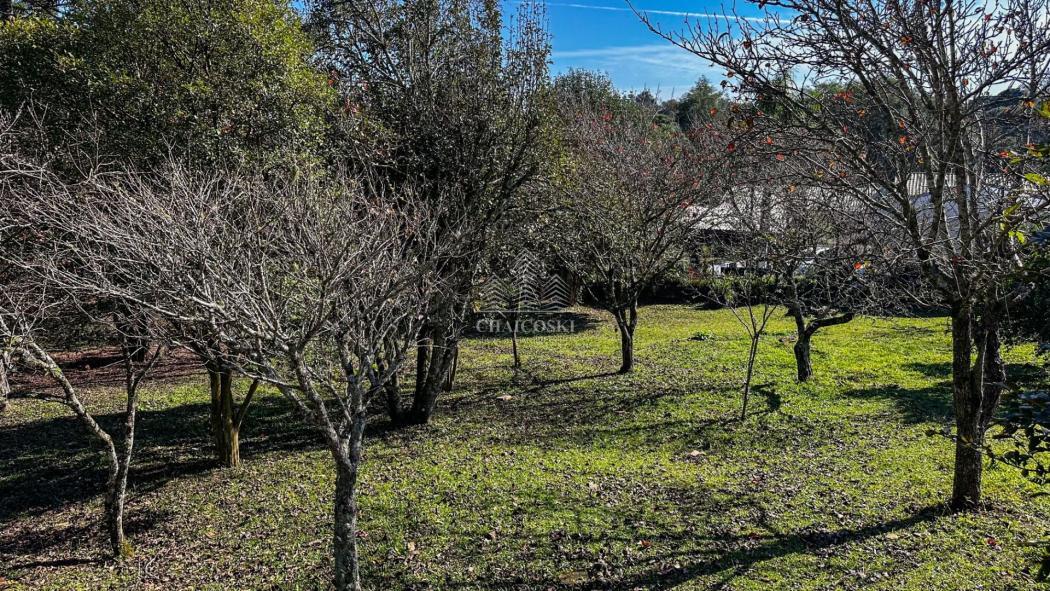 Chácara de 3.300 metros localizado quase na divisa com Curitiba, com creche do lado, vários comércios pertinho, asfalto até a frente, terreno com duas frentes, com um pomar, uma área grande plana com vista livre e espetacular.